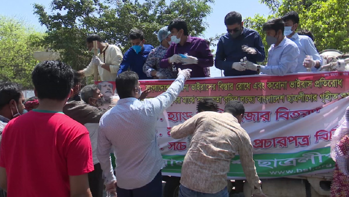 করোনার বিস্তৃতি ঠেকাতে ছাত্রলীগের উদ্যোগে রাজধানীর বিভিন্ন স্থানে হ্যান্ড স্যানিটাইজার ও মাস্ক বিতরণ করা হচ্ছে।