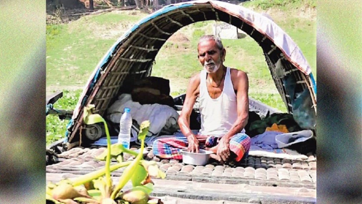 আত্মীয়ের বাড়িতে দুটো ভাঙাচোরা টিনের ঘর রয়েছে। ফলে সেই বাড়িতে থেকে দূরত্ব-বিধি মেনে চলা সম্ভব ছিল না ষাটোর্ধ্ব নিরাঞ্জনের। তাই শেষে ঠাঁই নিতে হয়েছে আত্মীয়ের বাড়ির পাশে বাঁধা নৌকায়।