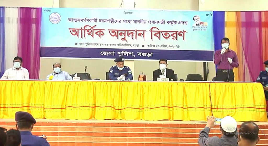 বগুড়ায় আত্মসমর্পণকারী চরমপন্থীদের হাতে প্রধানমন্ত্রীর আর্থিক অনুদান তুলে দিয়েছে জেলা পুলিশ।