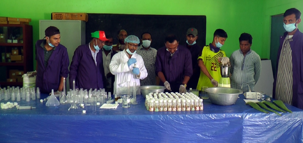 ছবি: হ্যান্ড স্যানিটাইজার তৈরি করছেন পাবনা-২ আসনের এমপি আহমেদ ফিরোজ কবির।
