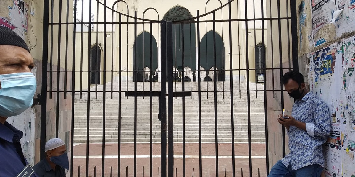 জাতীয় মসজিদ বায়তুল মোকাররমের মূল গেইটই বন্ধ রাখা হয়। নির্ধারিত মুসল্লিরাই কেবল নামাজ আদায় করেন। একই অবস্থা রাজধানীর অন্যসব মসজিদেও। রমজানের এমন দিনে মসজিদে ঢুকতে না পেরে ফুটপাতেই নামাজ আদায় করেন কেউ কেউ। আরবিতে খুৎবা হলেও বাংলায় কোন বয়ান করা হয়নি। নামাজ শেষে দোয়াও হয় খুবই সংক্ষিপ্ত। মহাদুর্যোগ থেকে মুক্তি ও আল্লাহর রহমত কামনা করা হয়। বায়তুল মোকাররমের বাইরে দাঁড়িয়েই সেই দোয়ায় অংশ নেন কয়েকজন।