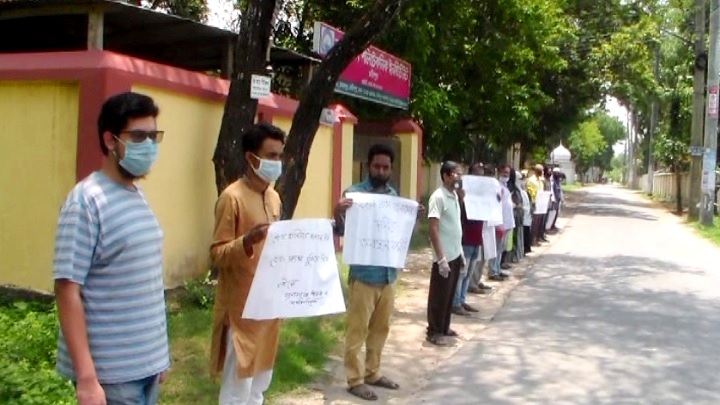 ন্যাশনাল পলিটেকনিক ইনস্টিটিউটের সামনে সামাজিক দূরত্ব বজায় রেখে মানববন্ধন