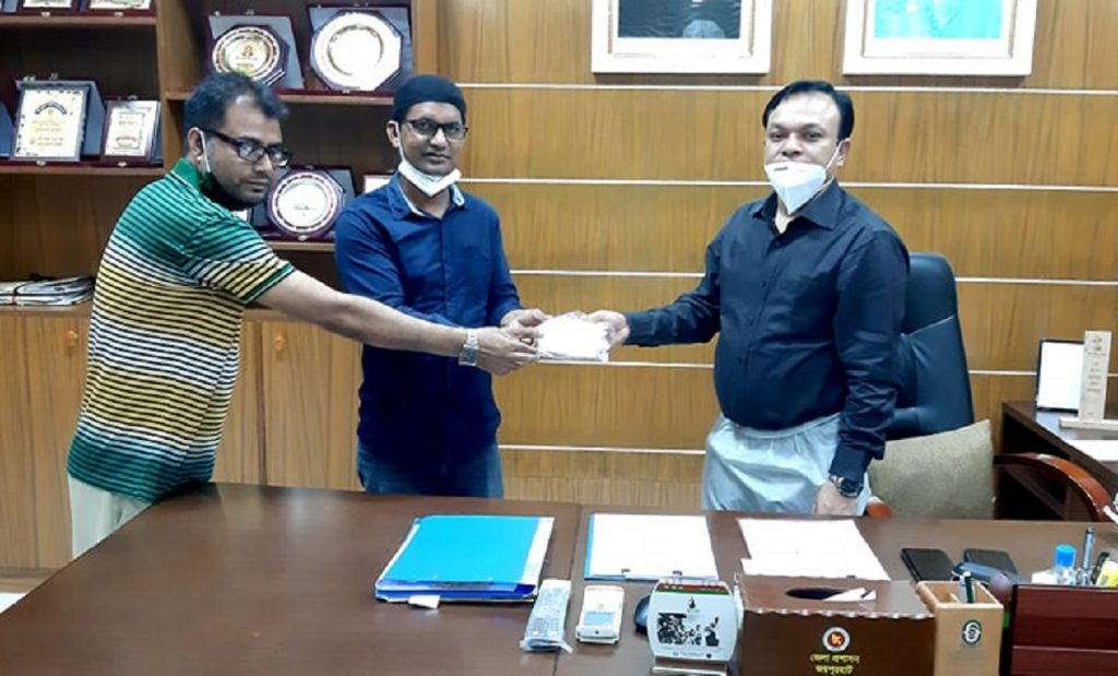 জয়পুরহাটের জেলা প্রশাসক মোহাম্মদ জাকির হোসেন ও পুলিশ সুপার মোহাম্মদ সালাম কবিরের হাতে এই মাস্ক তুলে দেন জয়পুরহাট টেলিভিশন রিপোর্টার্স ইউনিটির সভাপতি ও যমুনা টিভির নিজস্ব প্রতিবেদক আবদুল আলীম মন্ডল ও ‘করোনা যুদ্ধে আমরা’ সংগঠনের সমন্বয়কারী তিতাস মোস্তাফা।