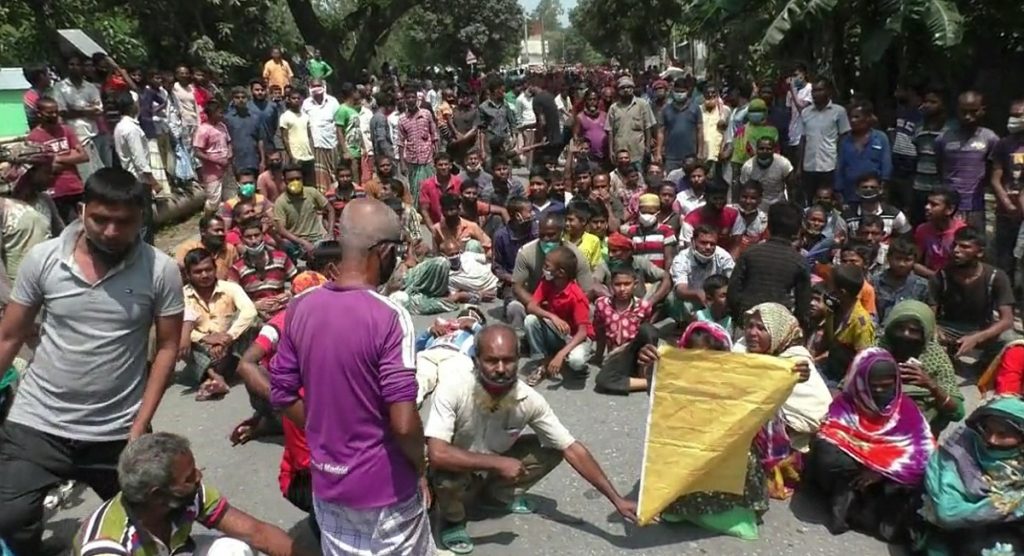 স্থানীয়দের অভিযোগ ইউনিয়ন পরিষদ থেকে বারবার তাদের আইডি কার্ডের ফটোকপি নেয়া হলেও এখন পর্যন্ত তারা কোন ত্রাণ সহায়তা পাননি। ফলে পরিবার পরিজন নিয়ে না খেতে পেরে তারা রাস্তায় নেমেছেন।