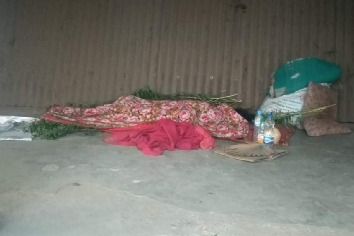 যাত্রী ছাউনিতে মারা যাওয়া অজ্ঞাত সেই বৃদ্ধার লাশ।