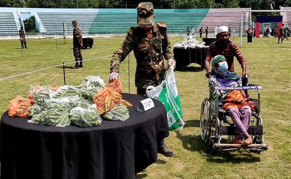 রোববার (১৭মে) সকালে বান্দরবান জেলা স্টেডিয়াম ও আলীকদম বালক উচ্চ বিদ্যালয় মাঠে করোনা প্রাদুর্ভাবের দুর্যোগ মুহূর্তে মানুষের সেবা প্রদানের জন্য ২৪পদাতিক ডিভিশনের জিওসি মেজর জেনারেল এস এম মতিউর রহমান এর নির্দেশে বান্দরবানের সেনা রিজিয়ন ও আলীকদম সেনা জোন এই এক মিনিটের বাজার বিতরণের আয়োজন করেন। বান্দরবান রিজিয়নের ব্রিগেড কমান্ডার ব্রিগেডিয়ার জেনারল খন্দকার মোঃ শাহিদুল এমরান এ বাজারের উদ্বোধন করেন।