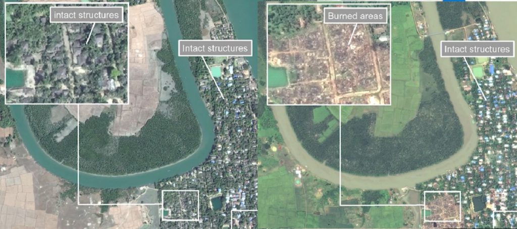স্যাটেলাইট ছবিতে আবারও উঠে এলো, রাখাইনের একটি গ্রামে বাড়িঘর আগুনে জ্বালিয়ে দেয়ার দৃশ্য। বেসামরিক আদিবাসীদের ওপর মিয়ানমার সেনাবাহিনীর সাম্প্রতিক বর্বরতার প্রমাণ এগুলো। এসব তথ্য জানায় আন্তর্জাতিক মানবাধিকার সংস্থা- হিউম্যান রাইটস ওয়াচ।
