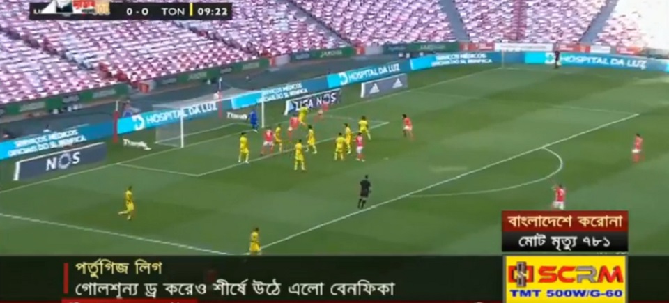 অবশ্য এদিন জয়ের দেখা পায়নি পর্তুগীজ ক্লাবটি। টেবিলের নিচের সারিতে থাকা টনডেলার বিপক্ষে গোলশূন্য ড্র করে বেনফিকা। ঘরের মাঠে ম্যাচটি ছিলো দর্শকশূন্য গ্যালারীতে। তবে মাঠে ঢোকার আগে শ’খানেক দর্শক স্টেডিয়াম প্রাঙ্গনে হাজির হয়েছিলো দলকে উজ্জীবিত করতে। অবশ্য মাঠে এর প্রভাব পরেনি।