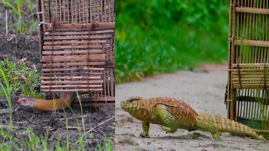 সংগঠনটির সাংগঠনিক সম্পাদক হাসান মাহমুদ ডি জানান, খবর পেয়ে আমরা দ্রুত ঘটনাস্থলে উপস্থিত হই। ফাঁদে আটকা পড়া প্রাণী দু’টির একটি ছিল মাঝারি ধরনের সোনা গুইসাপ ও অন্যটিতে প্রায় ৭/৮ ফিট দৈর্ঘ্যরে একটি দাঁড়াশ সাপ। গুইসাপটি নদীর পাশেই অবমুক্ত করা হয় এবং দাঁড়াশ সাপটি নিয়ে এলাকাবাসির আপত্তি থাকার তা লোকালয় থেকে দুরে ফাকা কৃষি জমিতে ছেড়ে দেয়া হয়।