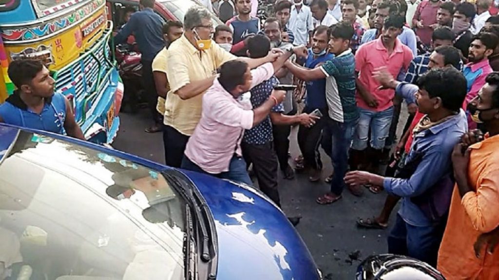 খবরে বলা হয়, আম্পানের ক্ষতিপূরণের কাজে দুর্নীতির অভিযোগ এনে দলের পক্ষ থেকে আমডাঙা থানা ও বিডিও অফিসে স্মারকলিপি দিতে আসেন বিধায়ক তন্ময় ভট্টাচার্য। কর্মসূচি শেষে গাড়িতে ওঠার সময় গোলমালের সূত্রপাত ঘটে।