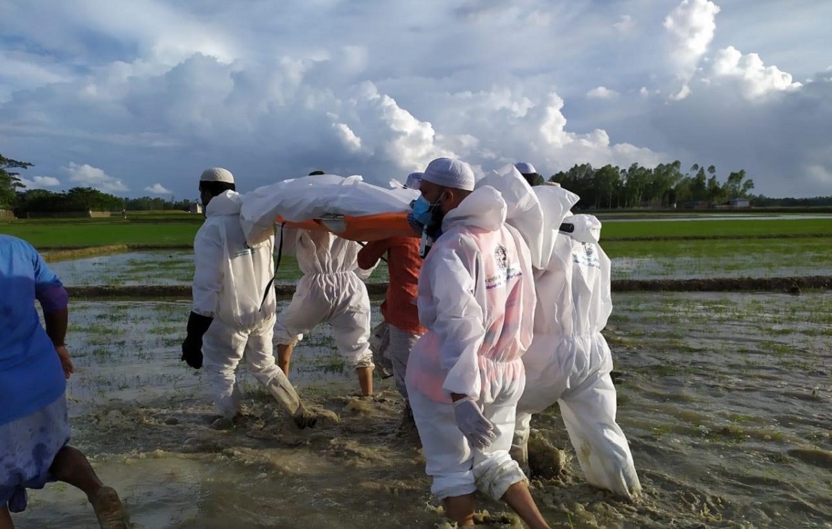 কিন্তু মৃতের দুই ভাই ছিলেন লাশের সাথে। পরে তাদের অবস্থা দেখে আল মানাহিলের লোকজন দুই ভাইকে পিপিই পড়িয়ে পুরো মুখ ঢেকে সাথে নিয়ে যান। তবে এখানেও শর্ত! কান্নাকাটি করা যাবে না। কারণ, কাঁদলে যে বাকি সবাই বুঝে যাবে!