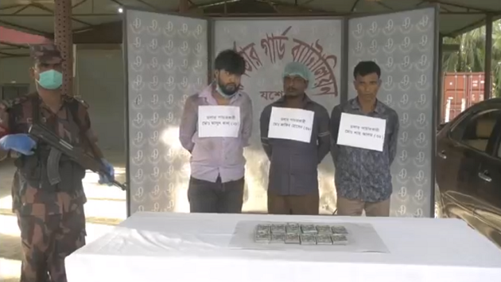 জব্দ ডলারের মূল্য বাংলাদেশি টাকায় ১ কোটি ২২ লাখ টাকা। আটককৃতরা প্রাথমিক জিজ্ঞাসাবাদে হুন্ডি ও স্বর্ণ চোরাকারবারীর সাথে দীর্ঘদিন যাবত জড়িত বলে স্বীকার করে। আটককৃতরা হলো শার্শার বালুন্ডা গ্রামের ইয়াছিন সরকারের পুত্র মো. শাহ আলম (৩৫), রামচন্দ্রপুর গ্রামের আব্দুস সালামের পুত্র মাসুদ রানা (২৮), ও রামচন্দ্রপুর গ্রামের গাজীপুর গ্রামের আব্দুল বারীর ছেলে জাকির হোসেন।