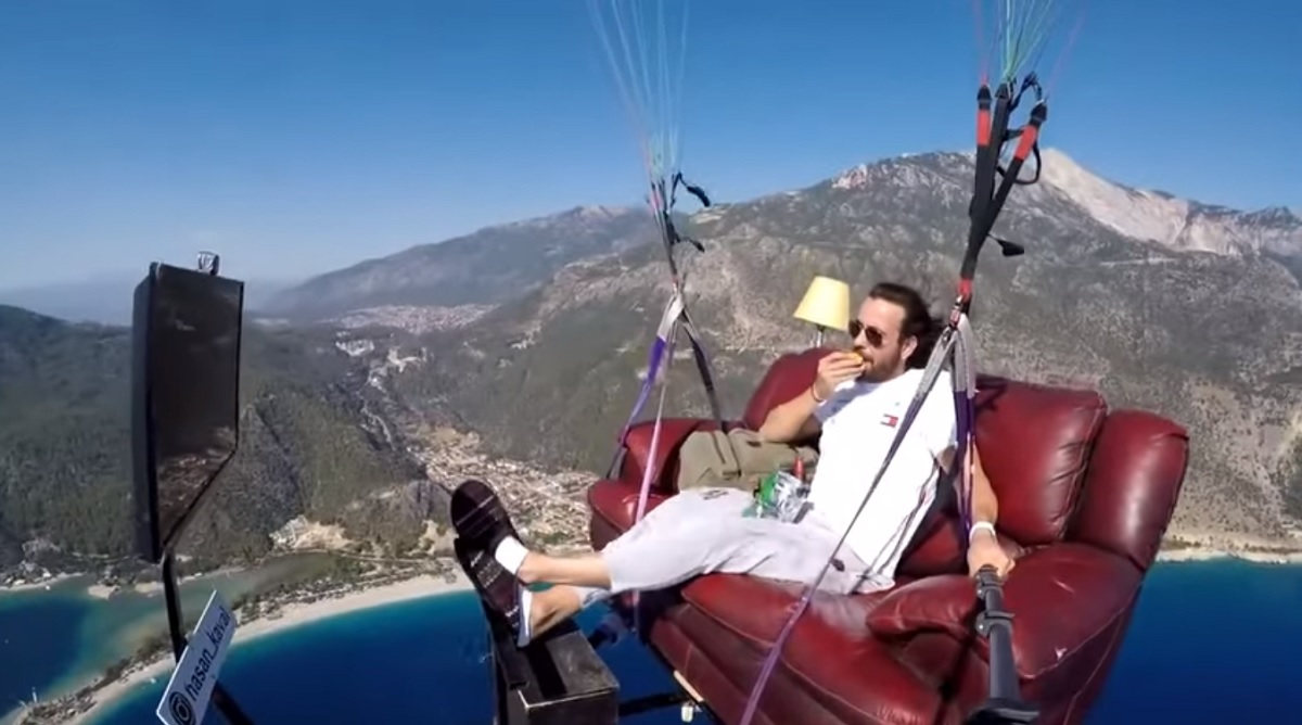আকাশে সোফায় বসে টিভি দেখছেন তুর্কি তরুণ! (ভিডিও)