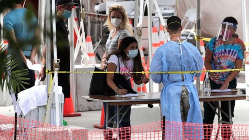 বিশ্বে মহামারি করোনাভাইরাসে সবচেয়ে ক্ষতিগ্রস্ত দেশ যুক্তরাষ্ট্রে এ নিয়ে মোট আক্রান্তের সংখ্যা ৩৩ লাখ ৬০ হাজার ছাড়িয়ে গেল। যুক্তরাষ্ট্রে করোনাভাইরাসে আক্রান্তের সংখ্যা সাম্প্রতিক সপ্তাহগুলোতে অনেক বেড়ে গেছে। গত শনিবার দেশটিতে ৬৬ হাজার ৫২৮ জন কোভিড-১৯ ভাইরাসে আক্রান্ত হয়। ২৪ ঘণ্টায় কোভিড-১৯ ভাইরাসে আক্রান্তের সংখ্যার দিক থেকে এটি ছিল একটি নতুন রেকর্ড।
