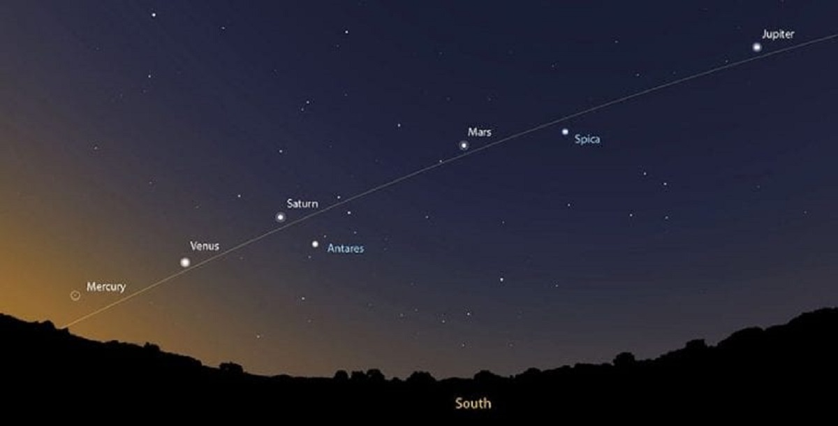 এবার খালি চোখে দেখা যাকে মহাকাশের পাঁচগ্রহ। চাঁদের পাশে এক সারিতে দেখা যাবে এই গ্রহগুলোকে। এজন্য সুর্যোদয়ের এক ঘণ্টা আগে ঘুম থেকে উঠতে হবে। ১৯ জুলাই থেকে ২৫ জুলাই পর্যন্ত খালি চোখে একসঙ্গে দেখা যাবে। আর এবার না দেখতে পেলে অপেক্ষা করতে হবে দুবছর। ২০২২ সালে জুনের শেষদিকে ফের এমনটা দেখা যাবে।