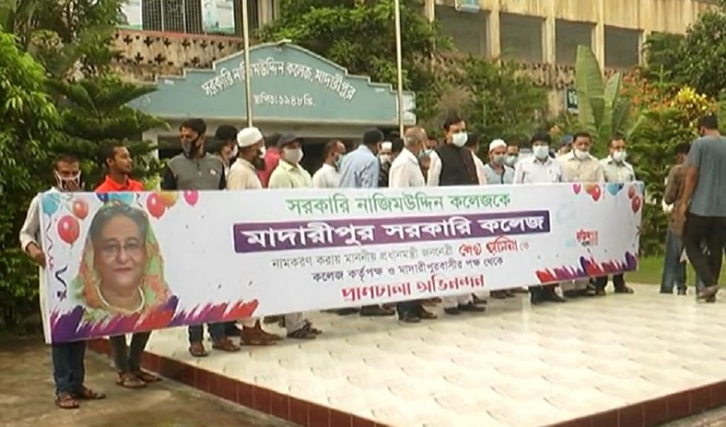 ১৯৪৮ সালে প্রতিষ্ঠিত সরকারি নাজিম উদ্দিন কলেজের নাম বদলে মাদারীপুর সরকারি কলেজ করা হয়েছে। বুধবার বিকেলে আনুষ্ঠানিক ভাবে কলেজটির নতুন নাম ফলকের উদ্বোধন করেন মাদারীপুর-২ আসনের সংসদ সদস্য শাজাহান খান এমপি। এ সময় উপস্থিত ছিলেন কলেজের অধ্যক্ষ বেবতি মোহন সরকার, মাদারীপুরের জেলা প্রশাসক ড. রহিমা খাতুন, জেলার পুলিশ সুপার মোহাম্মদ মাহাবুব হাসান, অতিরিক্ত জেলা প্রশাসক (সার্বিক) আজহারুল ইসলাম, পৌর মেয়র মো. খালিদ হোসেন ইয়াদসহ অনেকেই।