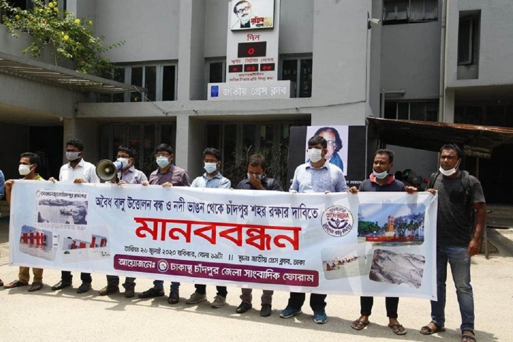 চাঁদপুরকে রক্ষার জন্য অবৈধ বালু উত্তোলন বন্ধসহ কার্যকরী পদক্ষেপ গ্রহণ করার দাবি জানিয়েছে ঢাকাস্থ চাঁদপুর জেলা সাংবাদিক ফোরাম। সংগঠনের নেতৃবৃন্দ আজ (২৬ জুলাই) জাতীয় প্রেস ক্লাবে মানববন্ধন করে এসব দাবি তুলে ধরেন।