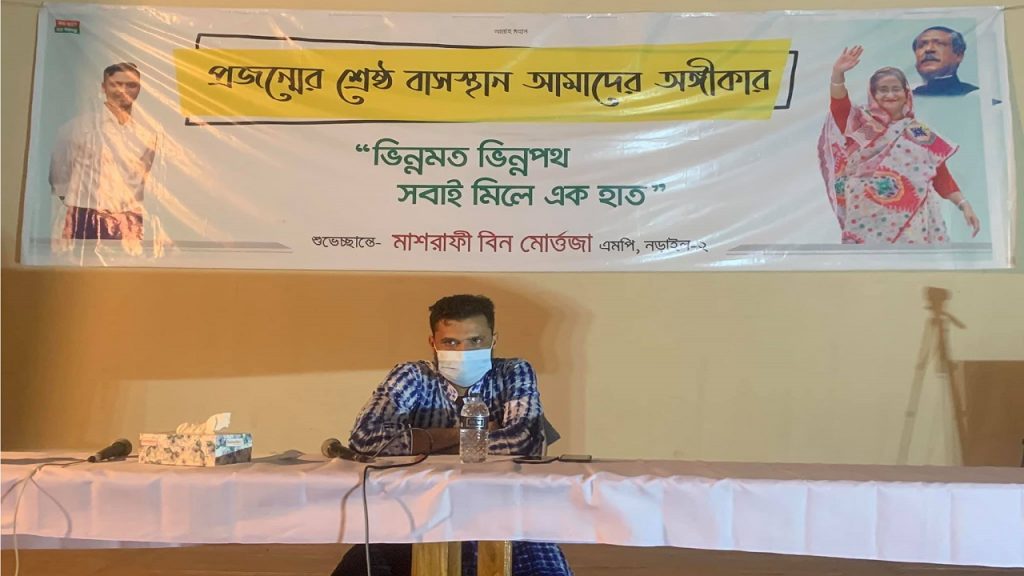 নড়াইল প্রেসক্লাবের সভাপতি এনামুল কবীরের সভাপতিত্বে প্রধান অতিথি ছিলেন মাশরাফী, বিশেষ অতিথি ছিলেন জেলা প্রশাসক আনজুমান আরা এবং পুলিশ সুপার মোহাম্মদ জসিম উদ্দীন। অনুষ্ঠান পরিচালনা করেন প্রেসক্লাবের সাধারণ সম্পাদক শামীমুল ইসলাম টুলু।