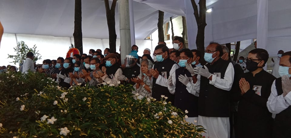 এরআগে, ধানমন্ডি ৩২ নম্বরে বঙ্গবন্ধুর প্রতিকৃতিতে আওয়ামী লীগের আনুষ্ঠানিক শ্রদ্ধা নিবেদন শুরু হয় সকাল ৮টা থেকে। এবার করোনার কারণে স্বাস্থ্যবিধি মেনে শোক দিবসের কর্মসূচি পালন করছে দলটি। তারপরও বিপুল সংখ্যক দলীয় নেতা-কর্মীর পাশাপাশি ১৪ দলের নেতাকর্মীরাও ভিড় করেন সেখান। পরে তাদের সাথে নিয়ে ফুল দেন শীর্ষ নেতারা।