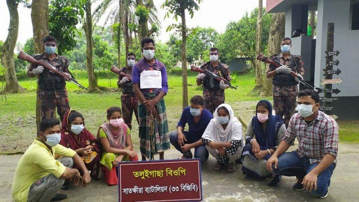 মঙ্গলবার (১৮ আগস্ট) সন্ধ্যায় বিজিবির সাতক্ষীরা ৩৩ ব্যাটালিয়ন সদর দফতরের এক প্রেস বিজ্ঞপ্তিতে এ তথ্য জানানো হয়। বিজিবির সাতক্ষীরা ৩৩ ব্যাটালিয়নের অধিনায়ক মোহাম্মদ গোলাম মহিউদ্দিন খন্দকার স্বাক্ষরিত প্রেস বিজ্ঞপ্তিতে বলা হয়, মঙ্গলবার সদর উপজেলার তলুইগাছা বিওপি’র হাবিলদার শামীম হোসেনের নেতৃত্বে একটি টহল দল সাতক্ষীরা সীমান্তের নটিজঙ্গল নামক এলাকায় অভিযান চালিয়ে অবৈধভাবে সীমান্ত পারাপারের সময় সাত বাংলাদেশি নাগরিক ও একজন মানব পাচারকারীকে আটক করে।