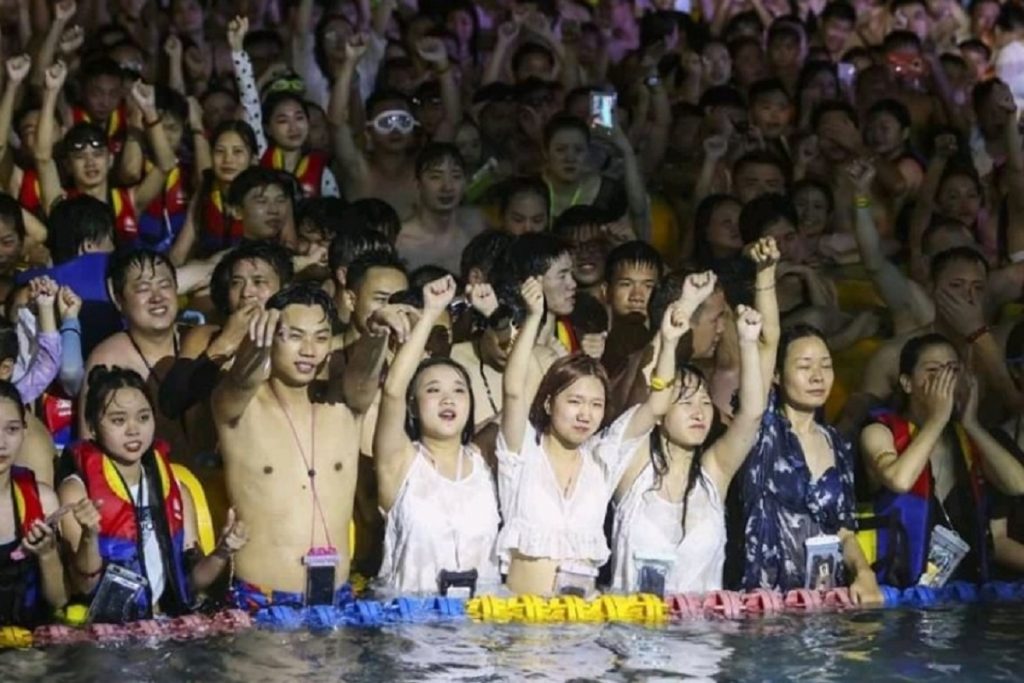 সোশ্যাল মিডিয়ায় উহানের সেই পার্টির কিছু ছবি ও ভিডিও ভাইরাল হয়েছে। তাতে দেখা যাচ্ছে, একটি ওয়াটার পার্কে কয়েক হাজার মানুষ জড়ো হয়েছেন। তাদের মধ্যে কোনও সামাজিক দূরত্বের বালাই নেই, নেই মাস্কের চিহ্ন মাত্র।