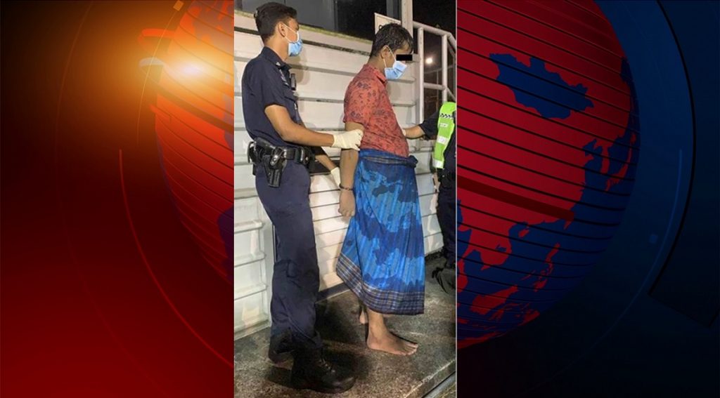 ছবিতে এক ব্যক্তিকে লুঙ্গি পরা অবস্থায় দেখা গেছে। ওই ব্যক্তির বিরুদ্ধে অবৈধভাবে সিঙ্গাপুর ছাড়ার চেষ্টা ও ‘বিপজ্জনক’ অস্ত্র দিয়ে আঘাতের অভিযোগও আনা হয়েছে।