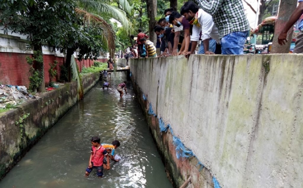 ড্রেনে টাকা ভেসে যাচ্ছে। খবর পেয়ে ভিড় করেছে মানুষ। কেউ কেউ টাকা কুড়াতে ড্রেনে নেমেও পড়েছেন। একজন পেয়েও গেলেন ৫০০ টাকার একটি নোট! তার দেখাদেখি আরও কয়েকজন নেমে পড়লেন।