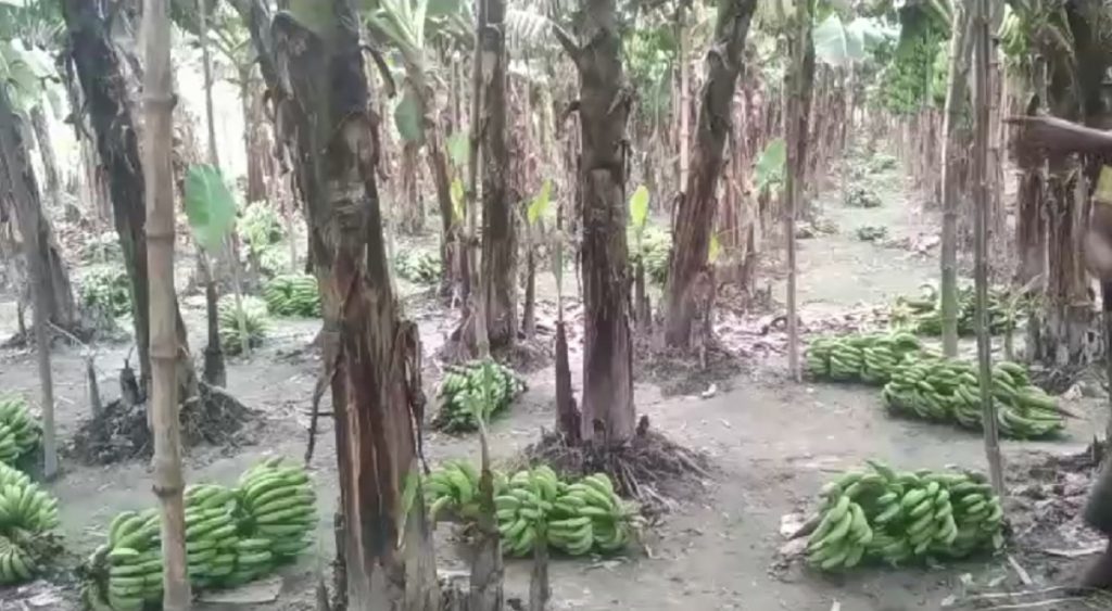 পুলিশ ও স্থানীয়রা জানান, কৃষক বীরেন্দ্রনাথ তার বাড়ির পাশে ২ একর জমিতে ৭০০ কলাগাছ লাগান। যার সবগুলোতেই কলা ধরেছিল। রোববার রাতের কোন এক সময় দুর্বৃত্তরা প্রায় ৫০০ কলাগাছ থেকে কলা কেটে জমিতে ফেলে দিয়ে যায়। এতে পথে বসেছেন ওই কলাচাষী।