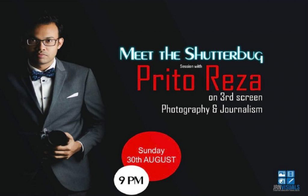 এক প্রেস বিজ্ঞপ্তিতে জানানো হয়, রোববার রাত নয়টায় ‘থার্ড স্ক্রিন, ফটোগ্রাফি এবং সাংবাদিকতা’ শীর্ষক এই ওয়েবিনারে প্রধান বক্তা হিসেবে অংশ নিয়েছেন দেশের ওয়েডিং ফটোগ্রাফির পথিকৃৎ এবং ‘ওয়েডিং ডায়েরি’র সিইও প্রীত রেজা।