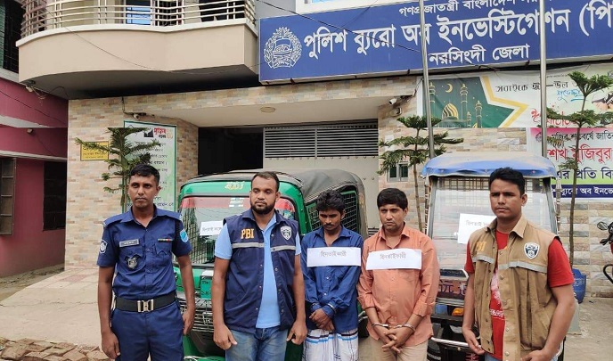 নরসিংদীতে যাত্রীবেশে অটোরিকশা ছিনতাইয়ের সময়ে হাতেনাতে সংঘবদ্ধ আন্তজেলা গাড়ী ছিনতাইকারী চক্রের ওই দুই সদস্যকে গ্রেফতার করেছে পুলিশ ব্যুরো অব ইনভেস্টিগেশন (পিবিআই)।