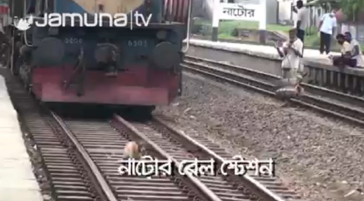 নাটোর স্টেশনে চলন্ত ট্রেনের সামনে পরেও বুদ্ধিমত্তায় বেঁচে গেলো ভেড়া (ভিডিও)