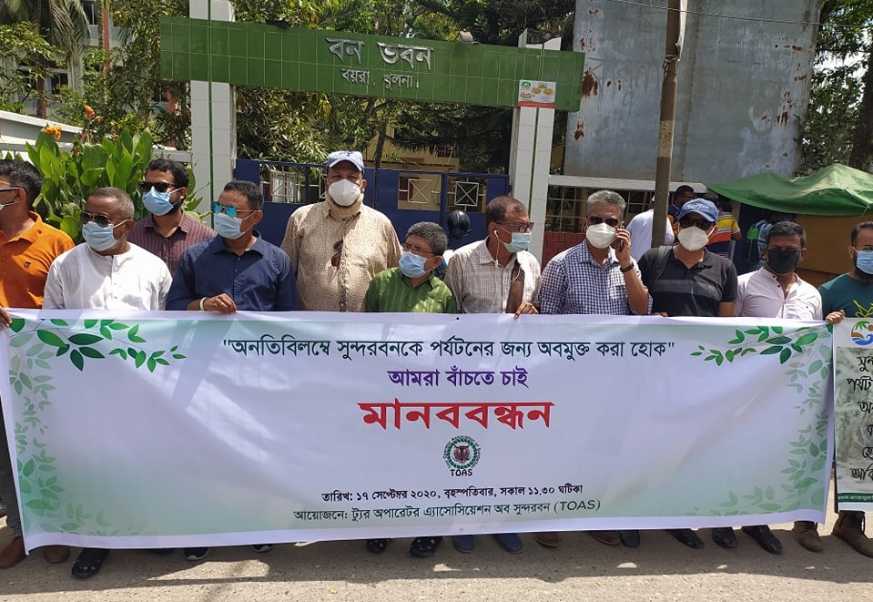 মানববন্ধনে বক্তারা বলেন, বিশ্বের সবচেয়ে বড় ম্যানগ্রোভ ফরেস্ট সুন্দরবনে প্রতি আগ্রহ রয়েছে দেশি-বিদেশি পর্যটকদের। প্রতি বছর কয়েক লাখ দেশি-বিদেশি পর্যটক ভিড় করতেন সুন্দরবনের পর্যটন কেন্দ্রগুলোতে। প্রায় পাঁচ মাস ধরে সুন্দরবনের ভেতরে প্রবেশে নিষেধাজ্ঞা থাকায় দর্শনীয় স্থানগুলো পর্যটকশূন্য হয়ে পড়েছে। এতে সরকার বিপুল পরিমাণ রাজস্ব হারাচ্ছে, আর্থিক ক্ষতিতে পড়েছেন লঞ্চ, ট্রলার মালিক, ট্যুর অপারেটরসহ পর্যটন সংশ্লিষ্ট ব্যবসায়ীরা।