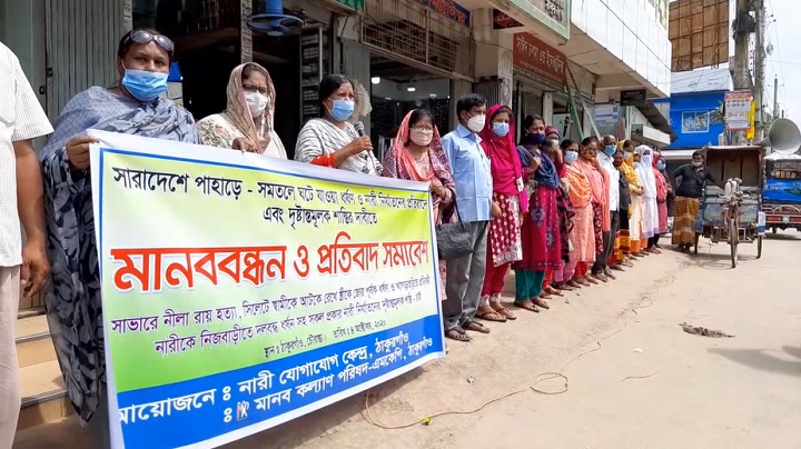 সারাদেশে পাহাড়ে ও সমতলে ঘটে যাওয়া ধর্ষণ ও নারী নির্যাতনের প্রতিবাদে এবং অপরাধীদের দৃষ্টান্তমূলক শাস্তির দাবিতে ঠাকুরগাঁওয়ে মানববন্ধন অনুষ্ঠিত হয়েছে।