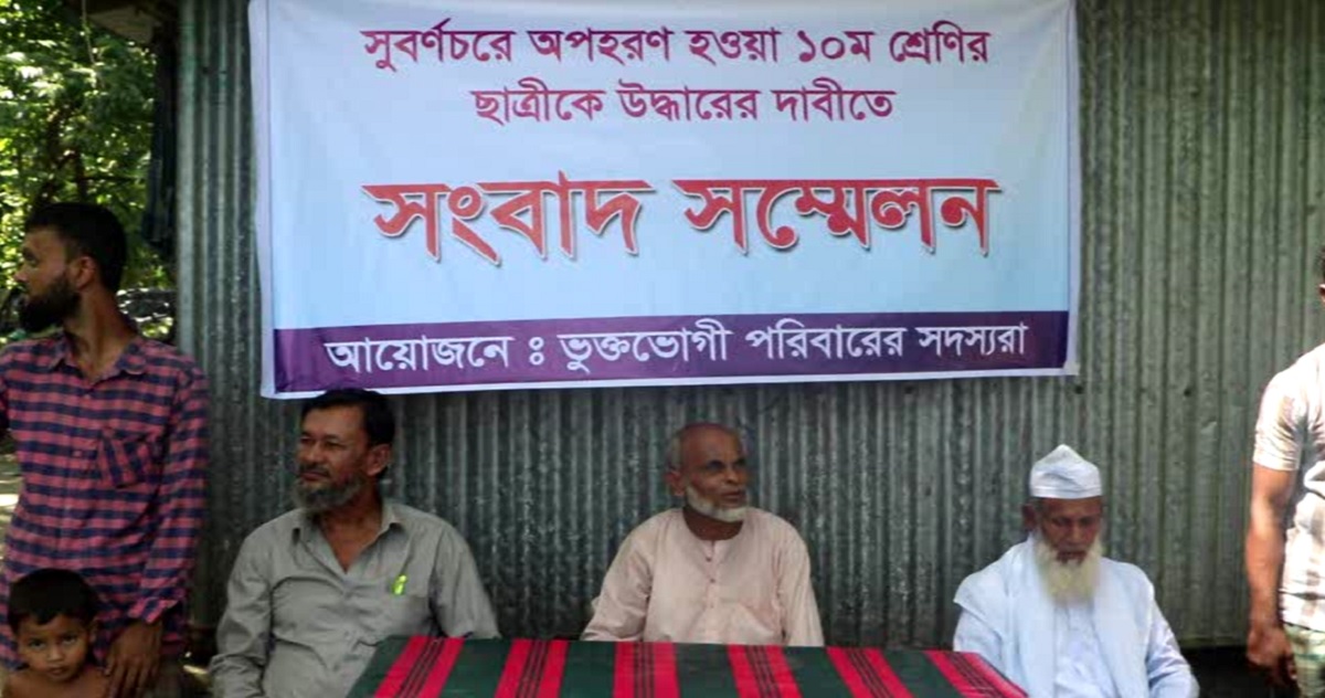 নোয়াখালীর সুবর্ণচর উপজেলার চরজুবলী ইউনিয়নের মাস পার হলেও এখনও উদ্ধার হয়নি অপহৃত দশম শ্রেণির মাদ্রাসাছাত্রী। এ নিয়ে সংবাদ সম্মেলন করেছে ভুক্তভোগী পরিবার।