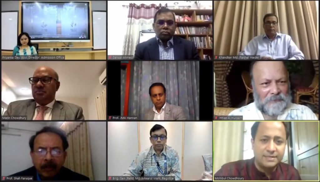এ উপলক্ষে অক্টোবর ৮ অনলাইনে এক অনুষ্ঠানের আয়োজন করা হয়। এতে প্রধান অতিথি হিসেবে উপস্থিত ছিলেন শিক্ষা উপমন্ত্রী মহিবুল হাসান চৌধুরী, এমপি। অনুষ্ঠানে উপস্থিত থেকে বক্তৃতা করেন আইইউবি’র বাের্ড অব ট্রাস্টিজের চেয়ারম্যান জনাব এ মতিন চৌধুরী; আইইউবি’র ভারপ্রাপ্ত উপাচার্য অধ্যাপক মিলান পাগন এবং বিশ্ববিদ্যালয়ের ৫টি ভিন্ন স্কুলের ডিনগণ। অনুষ্ঠানে স্বাগত বক্তব্য রাখেন আইইউবি’র রেজিস্ট্রার জনাব আনােয়ারুল ইসলাম এবং ধন্যবাদ জ্ঞাপন করে বক্তব্য রাখেন ইউজার জনাব খন্দকার মাে. ইফতেখার হায়দার।