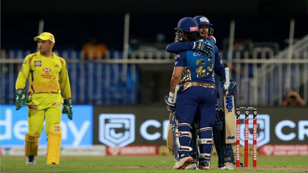 শারজা ক্রিকেট স্টেডিয়ামে চেন্নাইয়ের বিপক্ষে ১১৫ রানের সহজ টার্গেট তাড়া করতে নেমে ১০ উইকেটের বিশাল জয় পায় মুম্বাই ইন্ডিয়ান্স। এই জয়ে স্রেয়াশ আয়ার ও বিরাট কোহলির নেতৃত্বাধীন দিল্লি ক্যাপিটালস এবং রয়েল চ্যালেঞ্জার্স বেঙ্গালুরুকে হটিয়ে তৃতীয় পজিশন থেকে ১৪ পয়েন্ট শীর্ষে উঠে গেল মুম্বাই। সমান পয়েন্ট নিয়ে দুইয়ে দিল্লি ক্যাপিটালস আর তিনে বেঙ্গালুরু।