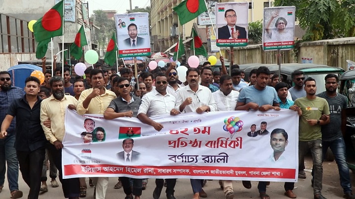 পাবনায় যুবদলের প্রতিষ্ঠাবার্ষিক উপলক্ষে র্যালী ও আলোচনা সভা অনুষ্ঠিত হয়েছে। এ উপলক্ষে শহরের ঈদগাহ মাঠ থেকে জেলা যুবদলের সভাপতি মোসাব্বির হোসেন সনজু ও সাধারণ সম্পাদক হিমেল রানার নেতৃত্বে এক র্যালী বের হয়ে শহরের প্রধান সড়ক প্রদক্ষিণ করে। এছাড়াও প্রতিষ্ঠাবার্ষিক উপলক্ষে জেলা বিএনপি কার্যালয়ে অনুষ্ঠিত হয় আলোচনা সভা। প্রধান অতিথির বক্তব্য দেন বিএনপি চেয়াপার্সনের উপদেষ্টা পরিষদ সদস্য ও জেলা বিএনপির আহবায়ক হাবিবুর রহমান হাবিব।