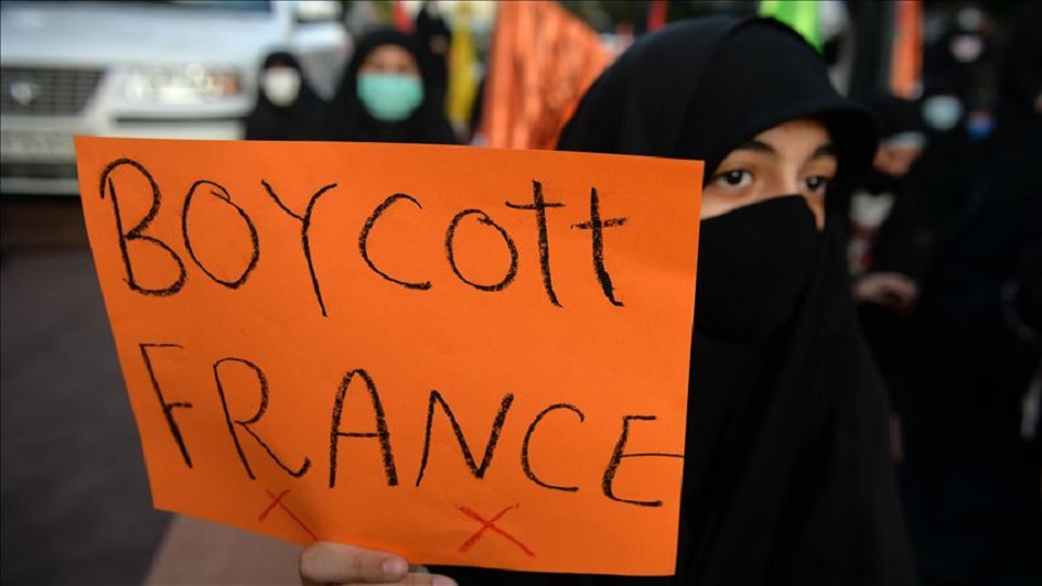 ইসলাম ধর্মের অবমাননা করে বক্তব্য দেয়ায় ফরাসি প্রেসিডেন্টের কঠোর সমালোচনা করে তাকে নিঃশর্ত ক্ষমা চাইতে বলেন। ইরানি শিক্ষার্থীরা এ সময় তেহরানে নিযুক্ত ফরাসি রাষ্ট্রদূতকে বহিষ্কারেরও দাবি জানান।