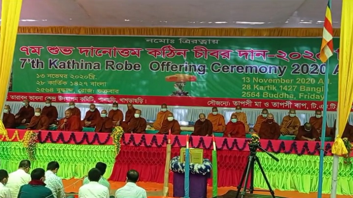 খাগড়াছড়িতে মাসব্যাপী চলছে বৌদ্ধ ধর্মাবলম্বীদের অন্যতম ধর্মীয় উৎসব কঠিন চীবর দানোৎসব। এ উপলক্ষে জেলার পানছড়ি উপজেলার তারাবন ভাবনা কেন্দ্রে ৭ম দানোত্তম শুভ কঠিন চীবর দান অনুষ্ঠিত হয়েছে।
