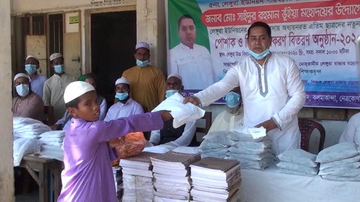 নেত্রকোণার লেঙ্গুরা ইউনিয়নের ১শ ৩৫ জন এতিম শিক্ষার্থীদের মাঝে পোষাক ও শিক্ষা উপকরণ বিতরণ করা হয়েছে।