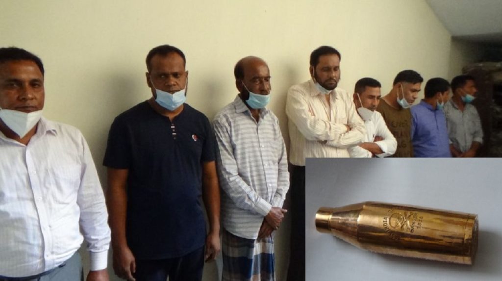 বুধবার দুপুরে উপজেলা সদরের ওই এলাকার ইদ্রিস খন্দকারের বাড়ি থেকে তাদের আটক করা হয়। এ সময় তাদের সাথে থাকা একটি মাইক্রোবাস, একটি সীমানা পিলার ধাতব বস্তু ও নয়টি মোবাইল ফোন জব্দ করা হয়।