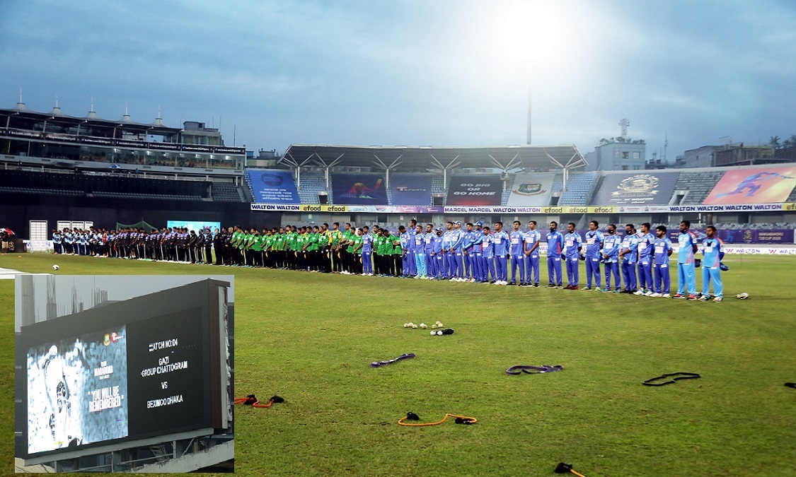 বৃহস্পতিবারের প্রথম ম্যাচের আগে আনুষ্ঠানিক শ্রদ্ধায় মিনিস্টার রাজশাহী ও জেমকন খুলনার সঙ্গে বেক্সিমকো ঢাকা, গাজী গ্রুপ চট্টগ্রামের সঙ্গে বিসিবির কর্মকর্তা, গ্রাউন্ডসম্যান, সাংবাদিকরাও অংশ নেন। জায়ান্ট স্ক্রিনে বিসিবির বার্তা ছিলো, ‘ইউ উইল বি রিমেমবারড, কিংবদন্তির মৃত্যু নেই’।