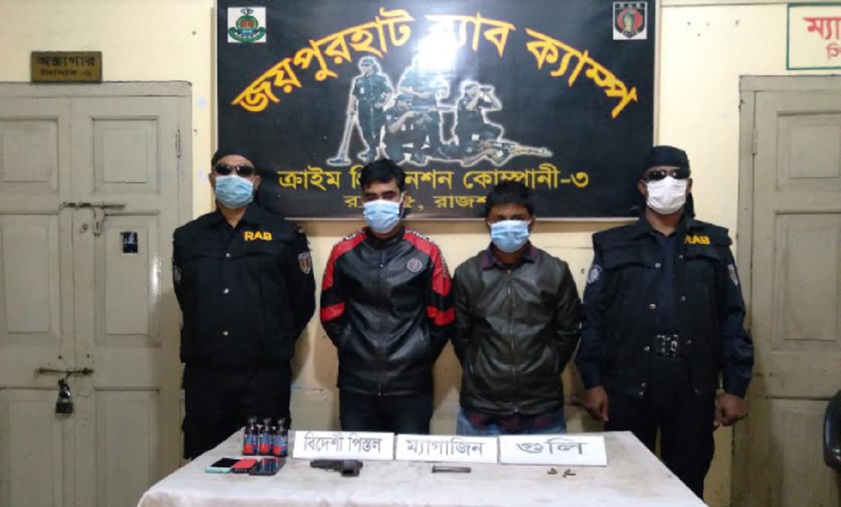 শনিবার ভোর রাতে শহরের শান্তিনগর এলাকা থেকে ১টি বিদেশি পিস্তল, ৫ রাউন্ড গুলি ও ১টি ম্যাগজিনসহ তাদের আটক করা হয়।