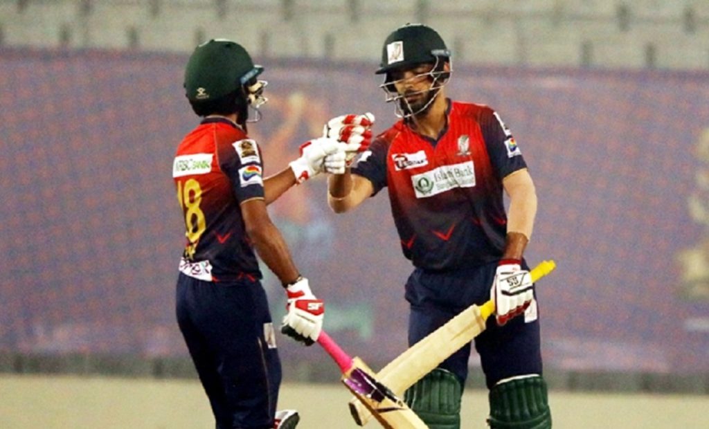 অথচ মিরপুর শের-ই বাংলা ক্রিকেট স্টেডিয়ামে ব্যাট করতে নেমে শুরুটা বেশ মন্থরগতির ছিল দুই ওপেনার তামিম ইকবাল ও সাইফ হাসানের। ১৭ বলে ১৯ রান করে তামিম ফিরে গেলেও ক্রিজে ছিলেন সাইফ। ওয়ানডে মেজাজে খেলা সাইফ করেন ৪৩ বলে ৫০ রান। এরপর দেশের দ্রুততম সেঞ্চুরিয়ান পারভেজ ইমন সচল রাখতে পারেনি রানের চাকা। ১৩ বলে ১৩ রান করে মাঠ ছাড়েন তিনি।