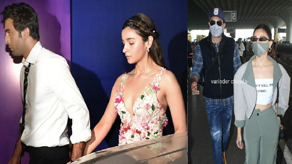 মুম্বাই এয়ারপোর্টে রণবীরকে দেখা যায় জিনস, নীল রঙের চেক শার্ট এবং কালো হাফ জ্যাকেট। আর আলিয়াকে দেখা যায় জলপাই রঙের ট্রাউজার, শর্ট টপস এবং স্লিম জ্যাকেটে।