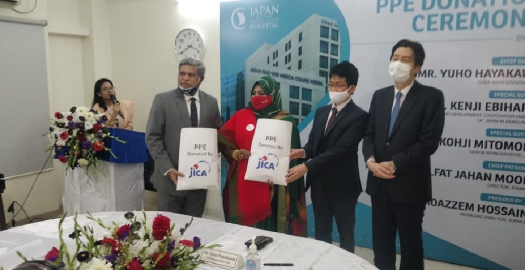 বাংলাদেশের আইচি মেডিকেল গ্রুপ এবং জাপানের শিপ হেলথকেয়ার এর যৌথ উদ্যোগে প্রতিষ্ঠিত জাপান ইস্ট ওয়েস্ট মেডিকেল কলেজ হাসপাতালে ব্যক্তিগত সুরক্ষা সামগ্রী (পিপিই) প্রদান করেছে জাইকা।