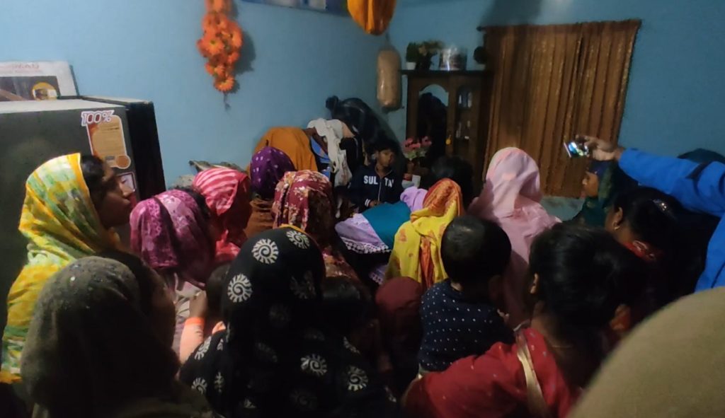 নিহত গৃহবধূর স্বামী নাঈম মোল্যা জানায়, বুধবার রাতে প্রতিদিনের মত রাতের খাবার খেয়ে তারা ঘুমিয়ে পড়ে। রাত তিনটার দিকে তার ঘুম ভেঙ্গে গেলে দেখতে পায় ঘরের ফ্যানের সাথে তার স্ত্রী ঝুলে আছে। পরে পরিবারের অন্য সদস্যরা মিলে তার স্ত্রীকে নিচে নামালে দেখতে পায় তার মৃত্যু হয়েছে।