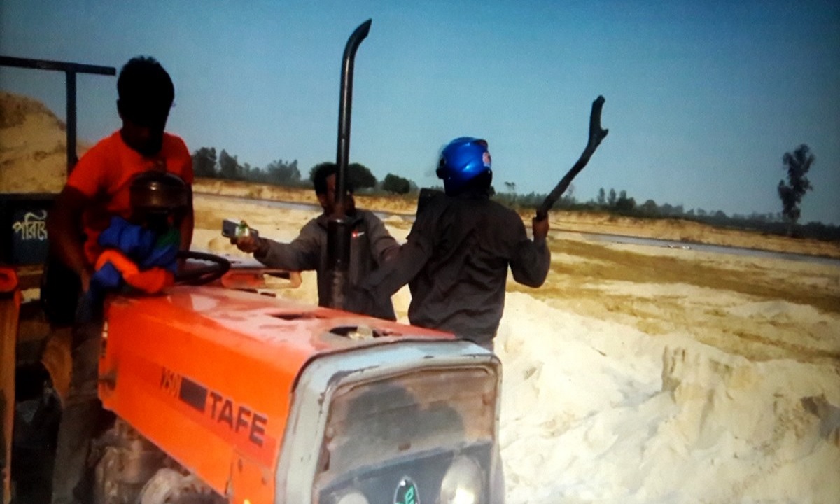 ঠাকুরগাঁওয়ের পীরগঞ্জ উপজেলার টাঙ্গন নদীর বালু অবৈধভাবে উত্তোলন করা হচ্ছে, এমন ছবি তুলতে গিয়ে স্থানীয় দুই সাংবাদিক লাঞ্ছিত হয়েছে।