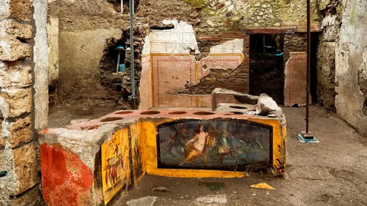 গার্ডিয়ান জানিয়েছে, প্রত্নতাত্ত্বিক বিশেষজ্ঞরা শনিবার পুরাতন এই ফাস্টফুড কাউন্টারের সন্ধান পেয়েছেন। দোকানের স্ন্যাক্সের কাউন্টারটি পলিক্রম নকশায় (বিভিন্ন রঙের ইট দিয়ে সাজানো নকশা) সজ্জিত। আগ্নেয়গিরির ছাইয়ে ঢাকা ছিল এ দোকান। গত বছর প্রত্নতাত্ত্বিকেরা এর আংশিক খুঁড়ে বের করেন।