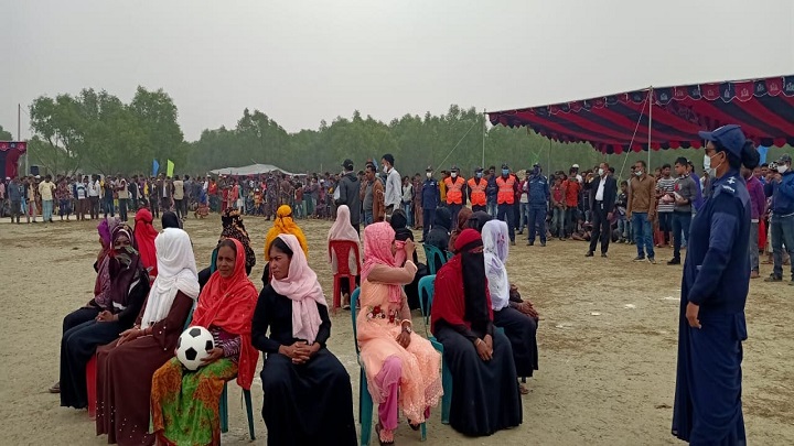 এর আগে সকালে রোহিঙ্গা শিশুদের অংশগ্রহণে ছিল ক্রীড়া প্রতিযোগিতা। যাতে শিশুরা দৌঁড়, মোরগের লড়াই, রশি টানাটানিসহ নানান প্রতিযোগিতায় অংশগ্রহণ করে। মহিলাদের বালিশ খেলা ছিল চোখে পড়ার মত। এজন্য মাঠের মাঝখানে বেশ কিছু চেয়ার দিয়ে তৈরি করা হয় খেলার প্যান্ডেল।